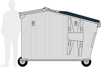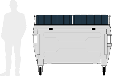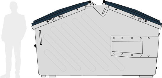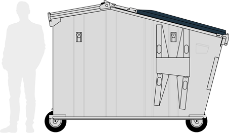 …eignen sich für die Sammlung von großvolumigen und sperrigen Abfällen. Sie kommen meist bei hohem Abfallaufkommen oder in der Transportlogistik zum Einsatz. Durch eine Tür ist das Befüllen sehr einfach.